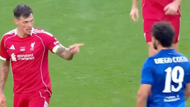 雷速体育10月11日讯 在今晚切尔西与利物浦的传奇慈善赛中意外地出现了火爆的一幕:代表切尔西出战的迭戈·科斯塔在与利物浦后卫斯科特尔的对抗中发生冲突,随后更是以一次故意犯规的动作进行报复。