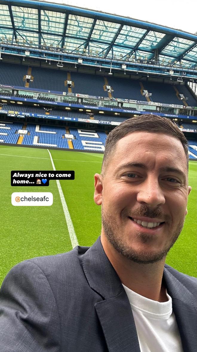赛前,阿扎尔在社交媒体晒出他在斯坦福桥的自拍照,并配文:“回家总是很美好”